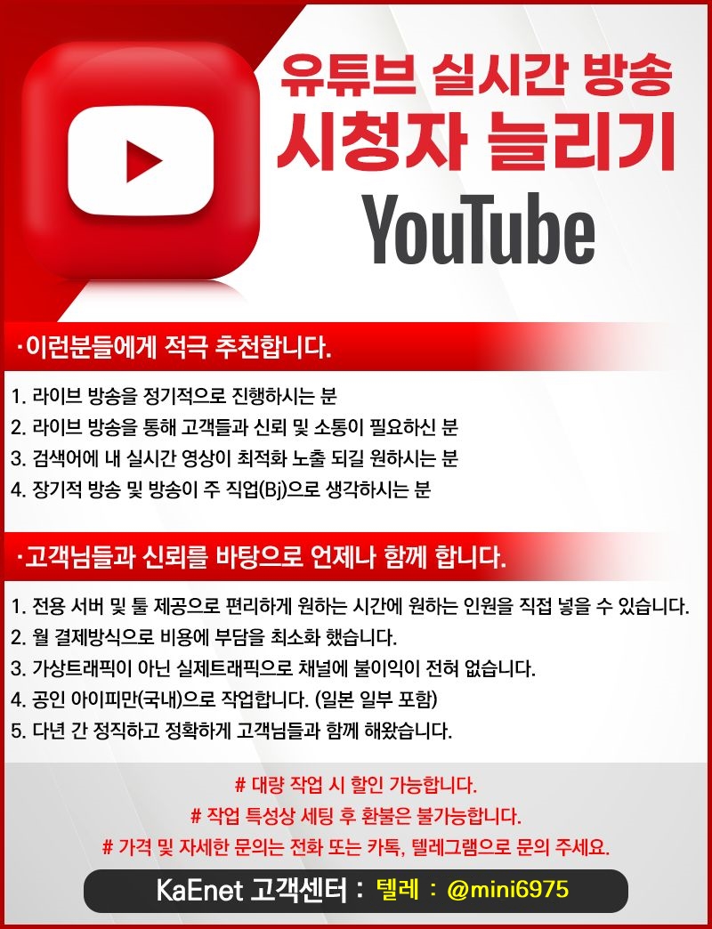 " 유튜브시청자 " 최저가격 / 고객편의 최상 / 국내공인IP / 전용서버
