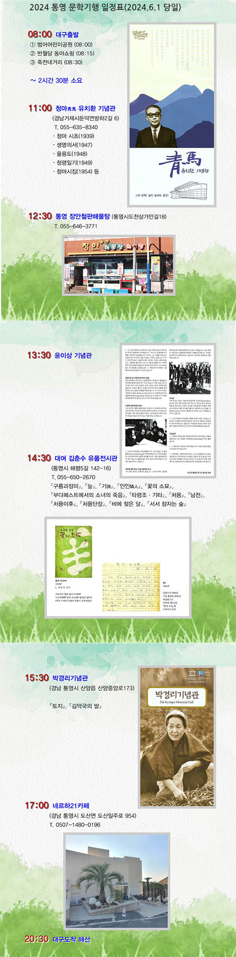2024년 6월1일 통영 문학기행 일정안내